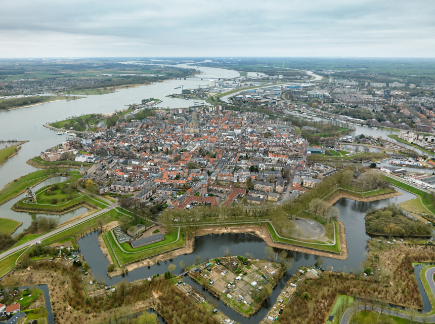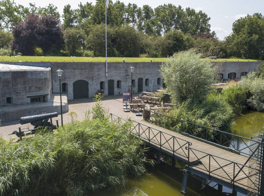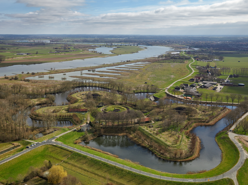het verdedigingssysteem maakt gebruik van onder water gezette velden, waterwerken en verschillende verdedigingswerken/forten en militaire posten over een gebied van 200 kilometer. Het centrum van het land werd beschermd door een aaneengesloten groep polders die door middel van een ingenieus systeem van kanalen en sluizen onder water gezet kon worden. Om deze waterwerken te beschermen werden 96 forten gebouwd; ook vormen 6 middeleeuwse vestingen en 2 kastelen onderdeel van het systeem. Fort Pannerden, ook wel de kraan van de waterlinie genoemd, is een van de belangrijkste onderdelen.
